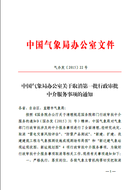 中国气象局办公室关于取消第一批行政审批中介服务事项的通知