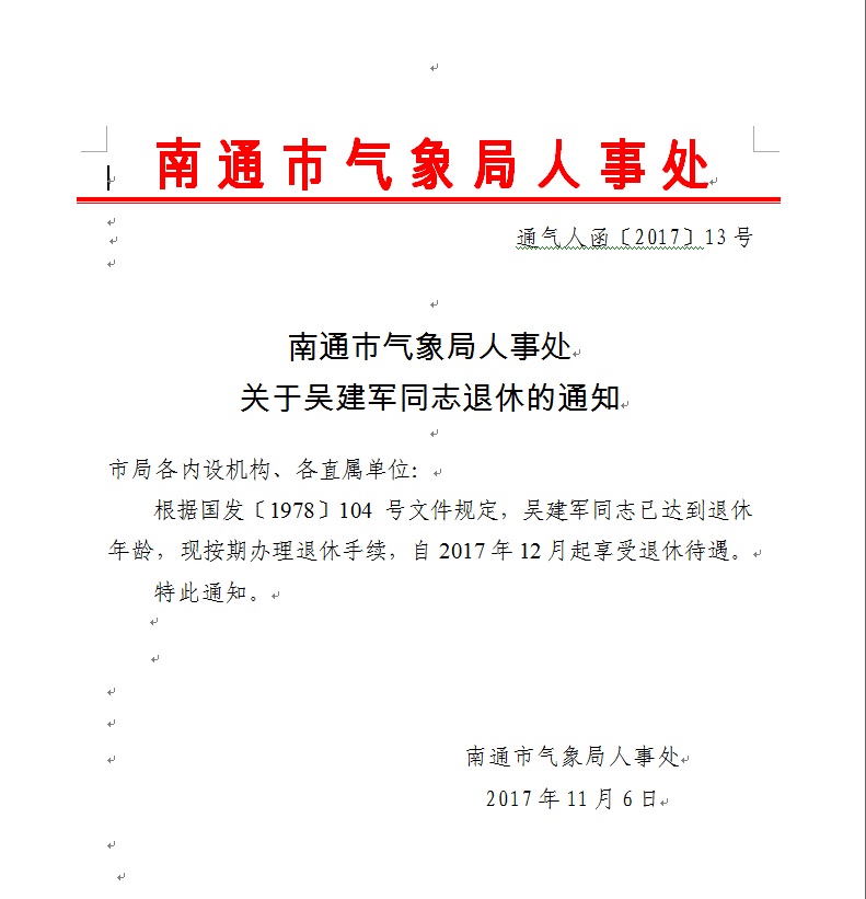 bet8娱乐官网注册关于吴建军同志退休的通知