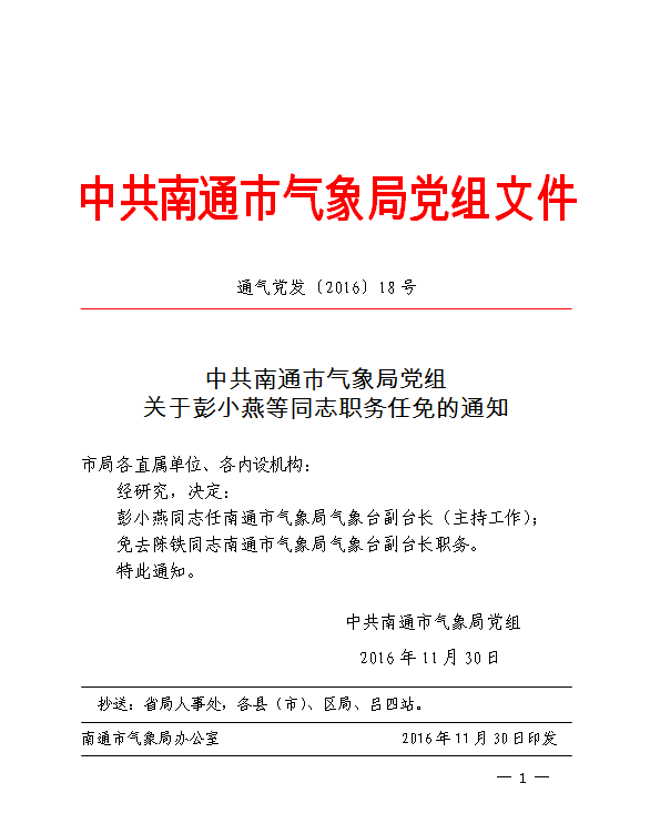 中共bet8娱乐官网注册党组关于彭小燕等同志职务任免的通知